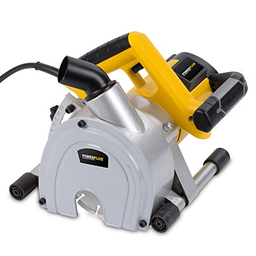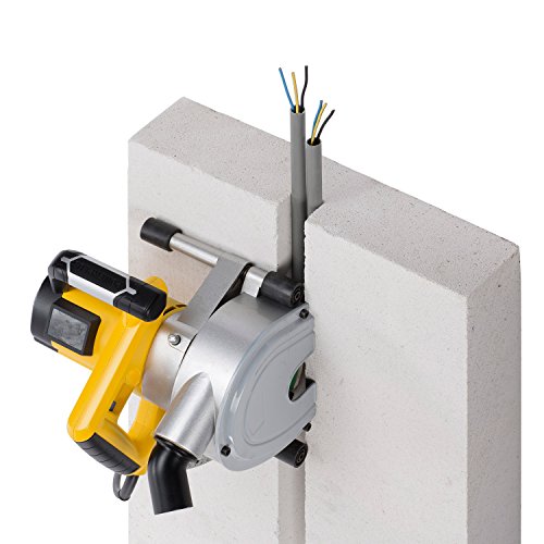 Mauernutfräse / Schlitzfräse / Mauerfräse mit 1.800 Watt Leistung, 150 mm Diamanttrennscheiben – Art. POWX0650 Diese Mauernutfräse, umgangssprachlich auch Schlitzmaschine genannt, ist ein Fräswerkzeug, welches zum Schlitzen von Nuten (fälschlicherweise manchmal als Fugen bezeichnet) für Rohre und Kabel in Beton, Gipswänden und Mauerwerk verwendet wird. Sie wird sicher verpackt im stabilen Kunststoffkoffer geliefert.Besonderheiten – 1.800 Watt Elektromotor – Kein verkannten der Maschine durch die breiten Führungsrollen – Softstart – die Maschine läuft langsam an und beschleunigt dann zur vollen Leistung – Sicherheitsschalter (verhindert unabsichtliches Einschalten) – Zwei parallel angebrachte 150 mm Diamanttrennscheiben (schnelles und einfaches Wechseln durch Spindelarretierung) – ermüdungsfreies Arbeiten durch gummierte, ergonomische Handgriffe – Schlitzttiefe kann direkt am Gehäuse eingestellt werden – 4 Abstandsringe ermöglichen eine einstellbare Schlitzbreite (14, 24, 34 und 44 mm) – Schlagfester KunststoffkofferProduktdetails Leistung: 1800 Watt Spannung: 230 V / 50 Hz Drehzahl: 5000 U/min Schlitztiefe: 0 – 45 mm Schlitzbreite: 14, 24, 34 und 44 mm Trennscheiben: Ø 150 mm / 22,2 mm Staubsaugeranschluss: Ø 4,8 cm Staubsaugeradapter: Ø 3,5 cm Gerätemaße: Breite: 28,5 cm / Länge: 30 cm / Höhe: 24 cm Gewicht: 5,8 kgLieferumfang 1 x Mauernutfräse 2 x Diamanttrennscheiben 1 x Werkzeug – Set 1 x Staubsaugeradapter 1 x Werkzeugkoffer